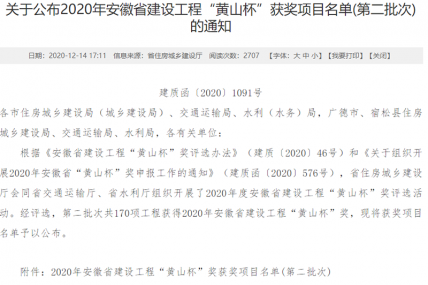 近日,2020年安徽省建設(shè)工程“黃山杯”獎(jiǎng)評(píng)選結(jié)果揭曉,由安徽省交通建設(shè)股份有限公司(以下簡(jiǎn)稱(chēng)安徽交建)施工建設(shè)的全椒縣城東片區(qū)一期道路工程、揚(yáng)州至績(jī)溪高速公路...