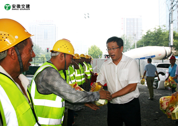 副市長寧波向奮戰(zhàn)在高溫下的工程建設者們表示感謝,給安徽交建一線員工送去了仁丹、風油精、肥皂、毛巾、礦泉水、綠豆等防暑降溫用品,并同現(xiàn)場的同志們一一握手。寧副市長強調(diào)指出,當前工程進入大干階段,又值高溫時節(jié),希望項目施工方科學調(diào)度、合理安排,既保證工期,又確保安全生產(chǎn),防止發(fā)生高溫中暑等事件。嚴格落實防暑降溫措施,對從事高溫作業(yè)和戶外作業(yè)的員工,要制定合理的作息制度。相關部門要根據(jù)各自職責,積極主動地做好服務保障工作,保障好每一位建設者的人身安全和健康。在得知項目工程進展順利后,寧副市長還詳細地了解了工地的避暑措施,并再三囑咐現(xiàn)場負責人,要加強安全管理、合理安排施工、避免強高溫時段室外作業(yè)、保障職工身心健康,并在確保工程質(zhì)量和施工安全的基礎上,進一步加快項目建設進度,努力交上一份完美答卷。