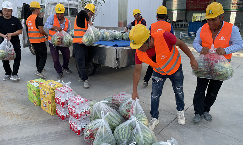 6月21日,安徽省交通建設(shè)股份有限公司慰問組帶著從三十崗新鮮采摘的10000斤西瓜,前往合肥地區(qū)在建的十個項目現(xiàn)場,親切慰問奮戰(zhàn)在一線的管理者和勞動者們。