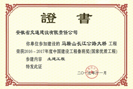 馬鞍山長(zhǎng)江公路大橋工程榮獲“2016-2017年度第一批中國(guó)建設(shè)工程魯班獎(jiǎng)”,“第15屆中國(guó)土木工程詹天佑獎(jiǎng)”, 該項(xiàng)目由安徽省交通建設(shè)股份有限公司(以下簡(jiǎn)稱(chēng)安...