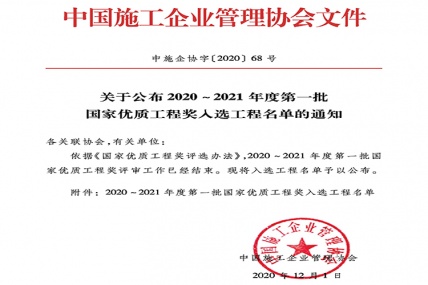 近日,中國(guó)施工企業(yè)管理協(xié)會(huì)再傳喜訊,安徽省交通建設(shè)股份有限公司承建的黃山至祁門(mén)高速公路項(xiàng)目榮獲“2020-2021年度第一批國(guó)家優(yōu)質(zhì)工程獎(jiǎng)”。